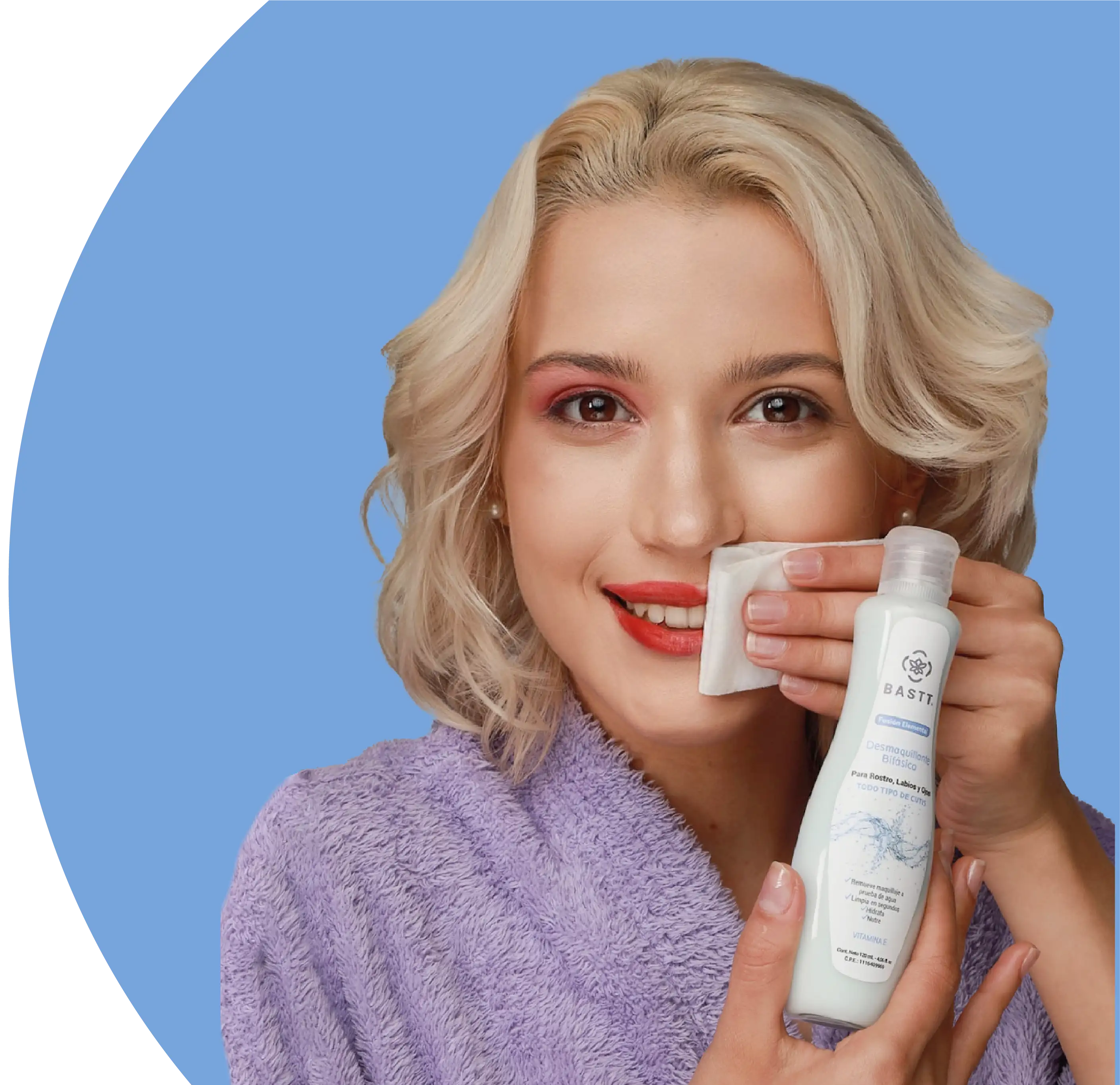 Con BASTT puedes, además de remover profundamente el maquillaje y los contaminantes del día en ojos, labios y rostro, nutrir tu piel mientras porque contiene Vitamina E, humectantes e hidratantes y mas; porque estas fortaleciendo tus pestañas naturales al mismo tiempo que no remueve las pestañas artificiales en caso de que las tengas.